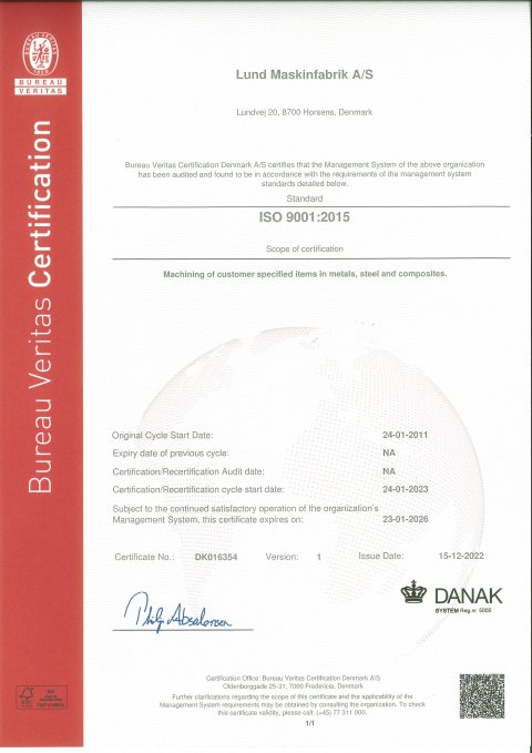 Lund Maskinfarbik har altid sat en ære i at levere det rigtige produkt og arbejde med kvalitetstyringen.